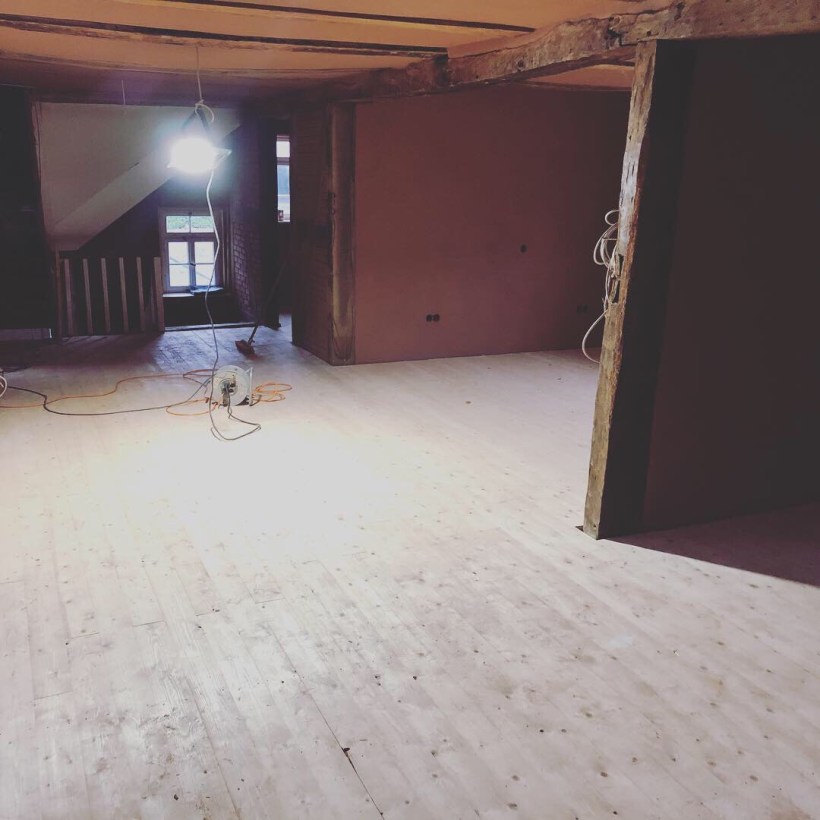 März 2019 Im OG zieht der Boden ein. Traumhafte Eichenholzdielen. Durchgängig durch die offene Raumgestaltung verlegt. Auf die Dielen kommt dann eine Lehmleichtbauwand. So sind wir später mal in der Lage den Grundriss einfach und unkompliziert anzupassen. Wer weiß, wann die Kids mal das Haus verlassen?! Und natürlich wird das ganze noch geölt und versiegelt. [...]