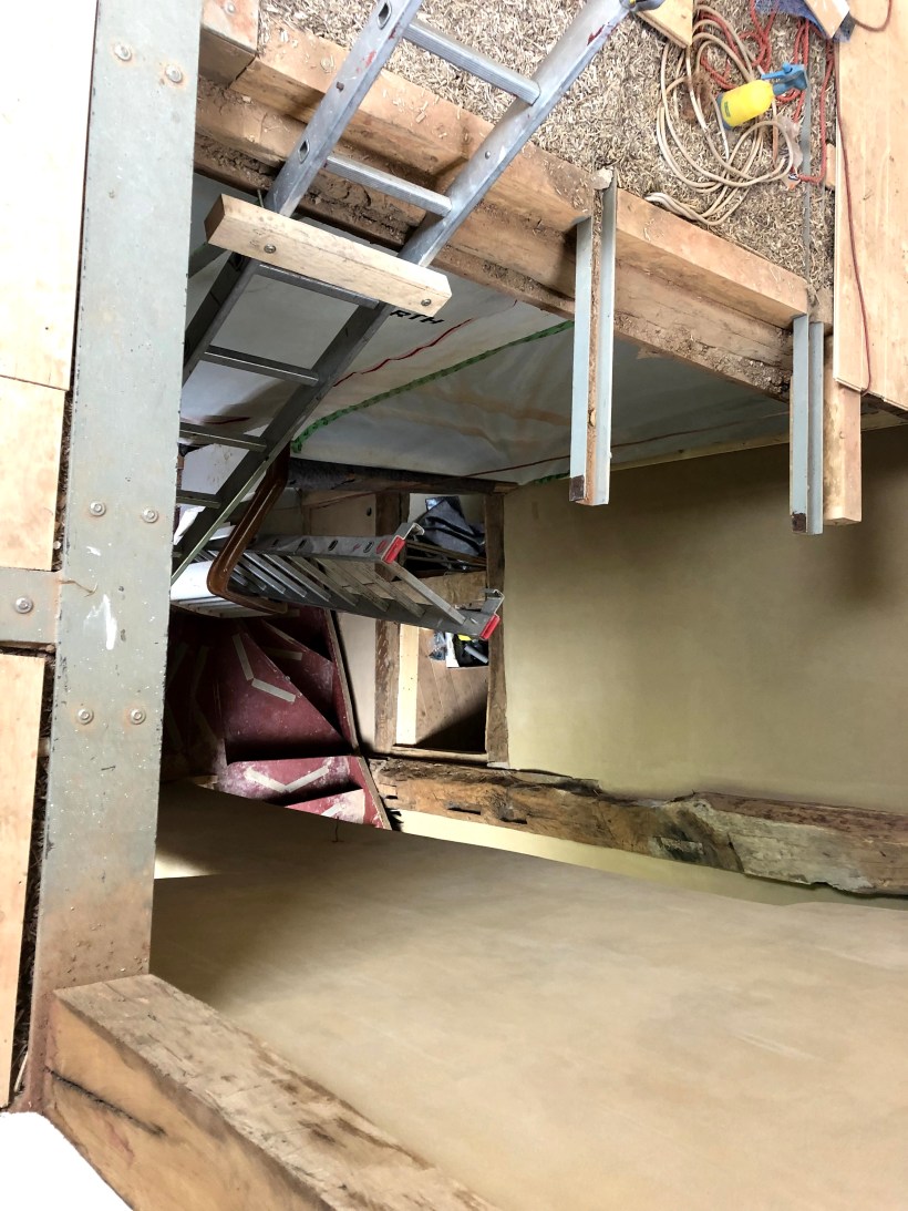 April 2019 Leider können wir die Treppe vom OG ins DG nicht mehr "retten". Diese muss leider neu ins Haus einziehen. Da wir im DG ja einen Stahlträger (siehe Blogbeitrag hier) zur Stabilisierung des Unterzuges zwischen OG und DG eingezogen haben, ist hier die Höhe des Fußbodens verändert worden. Ende vom Lied = Treppe neu. [...]