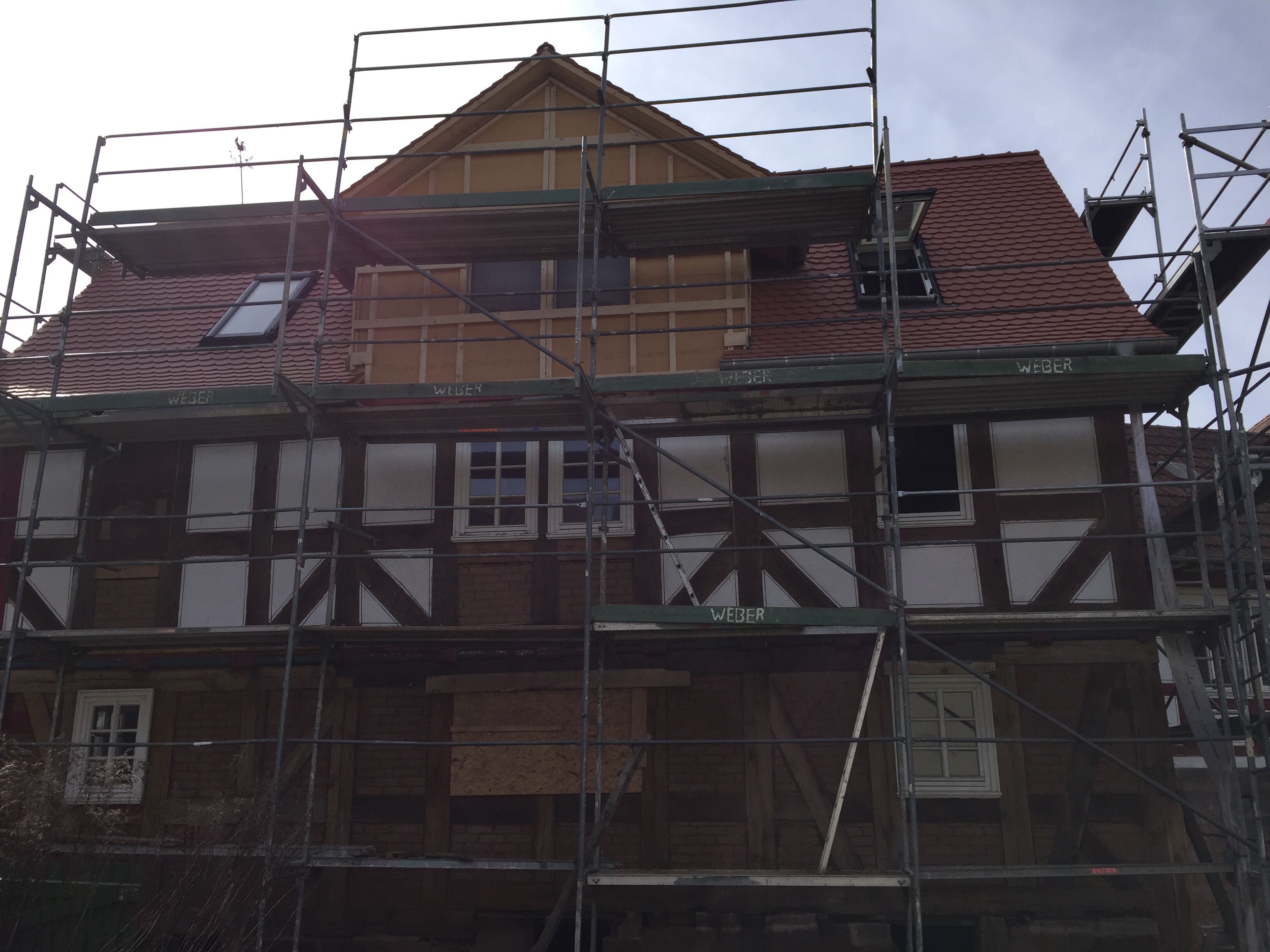Unser neues Zwerchhaus bekommt seine Holzverschalung.