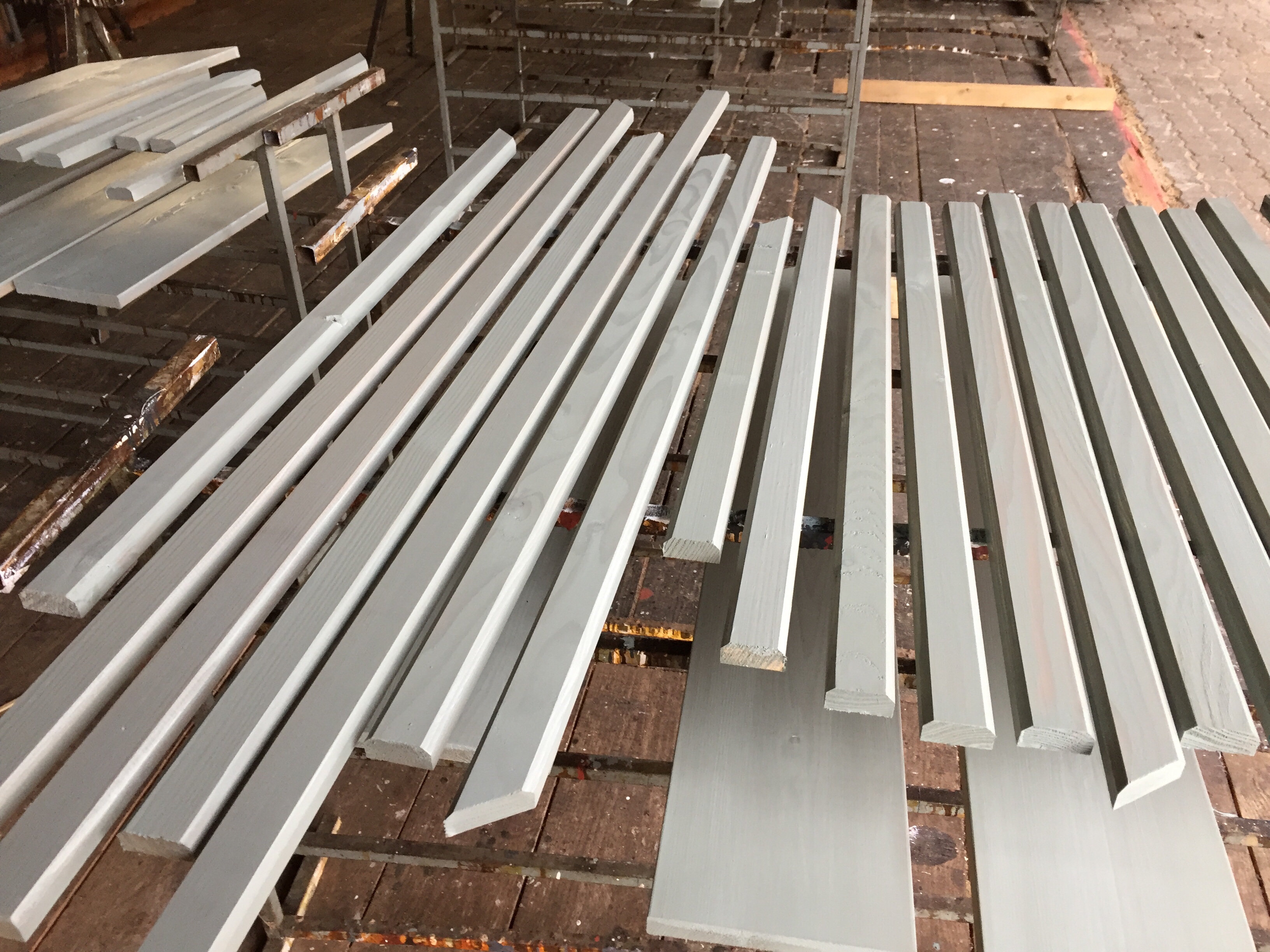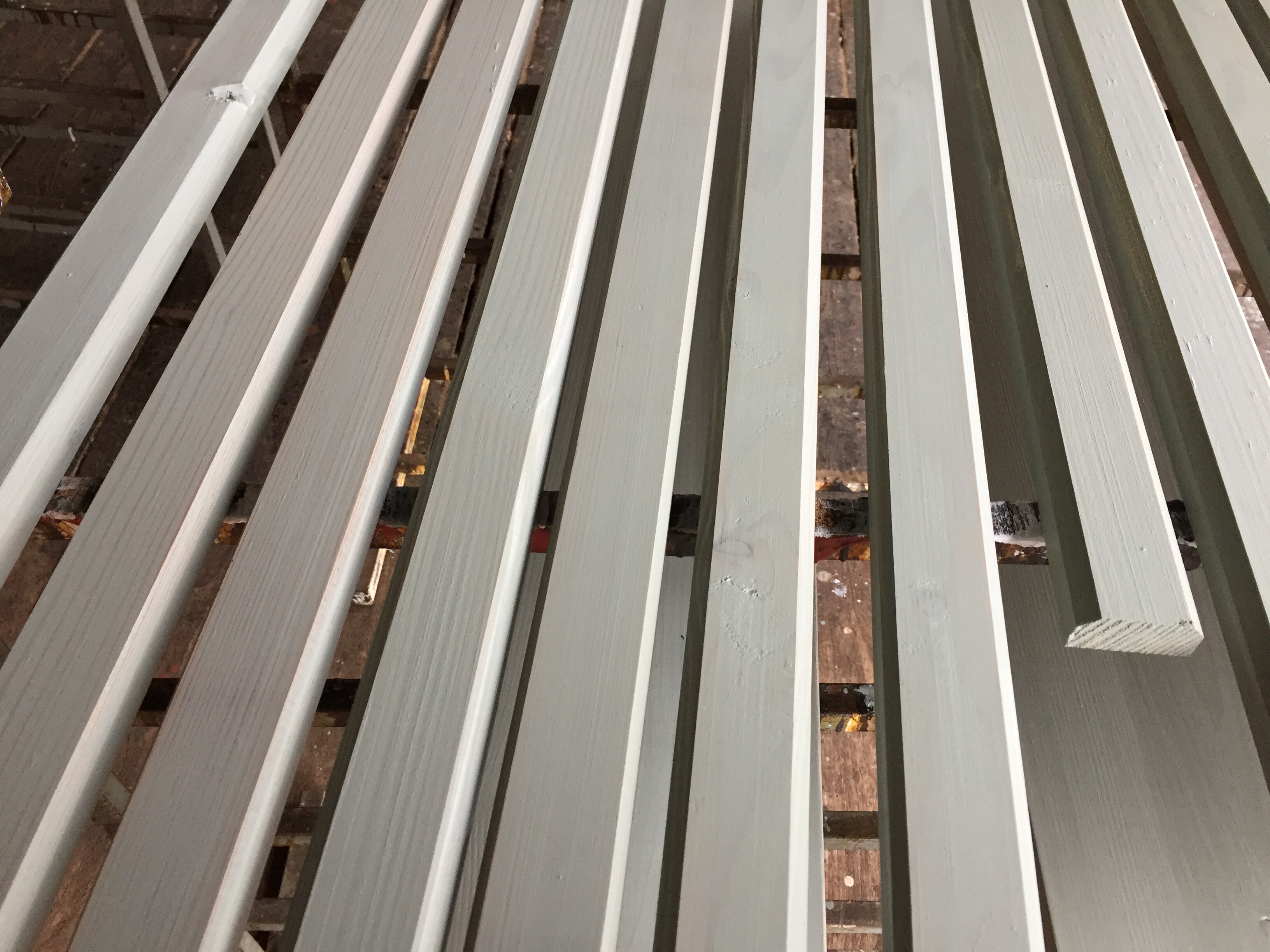 Wenn die Fenster eingebaut sind, dann werden die letzten Blend-Latten gesetzt.