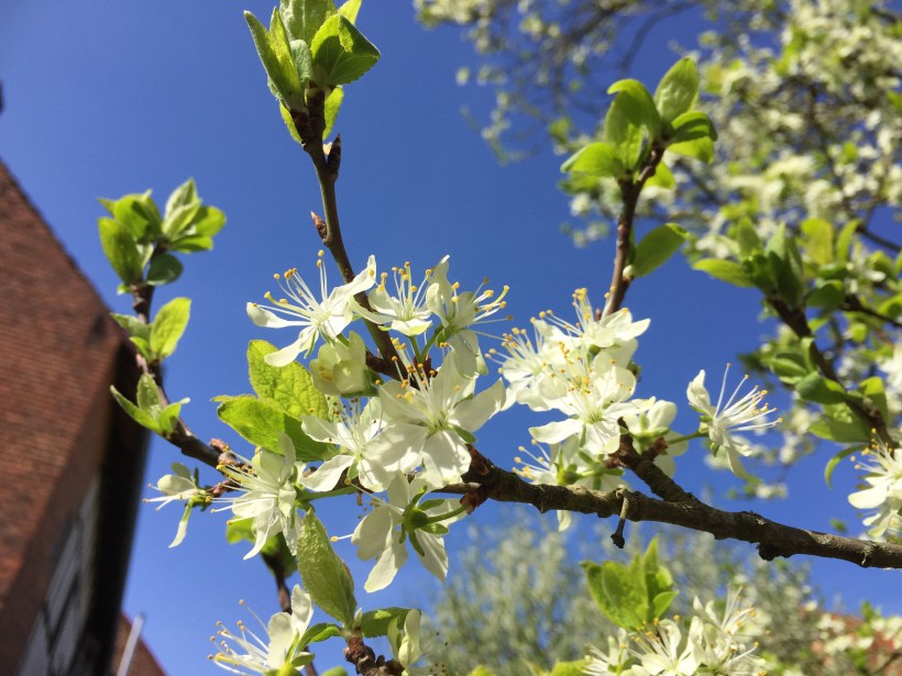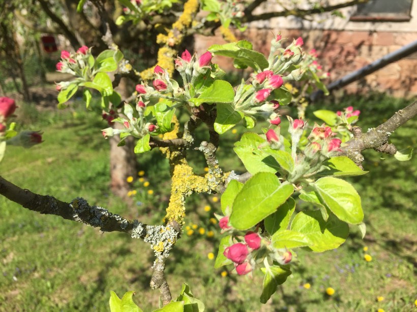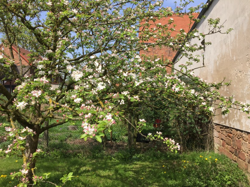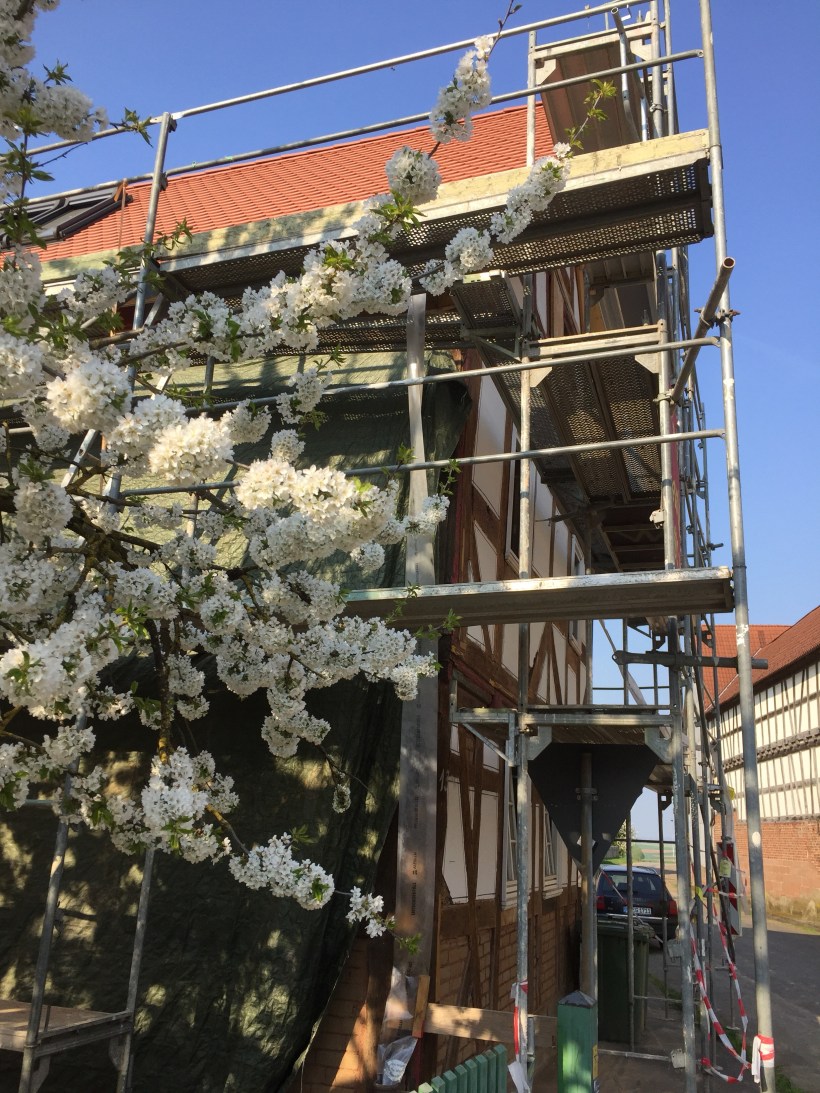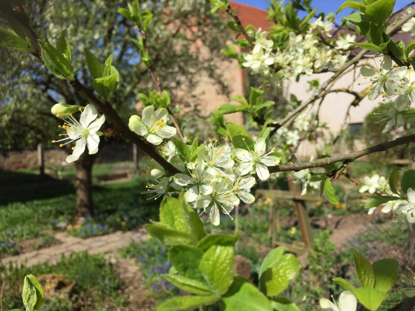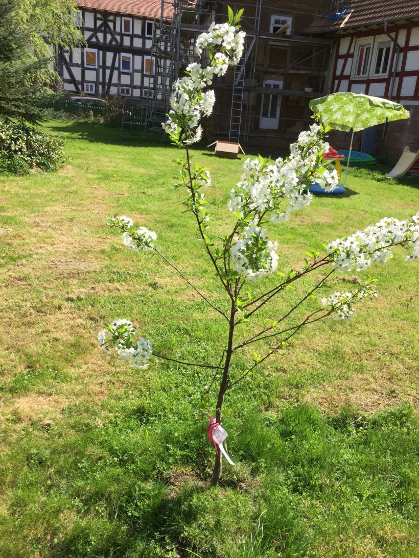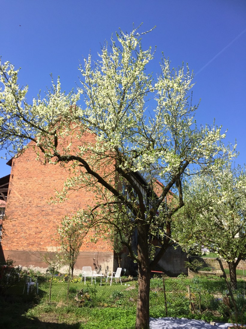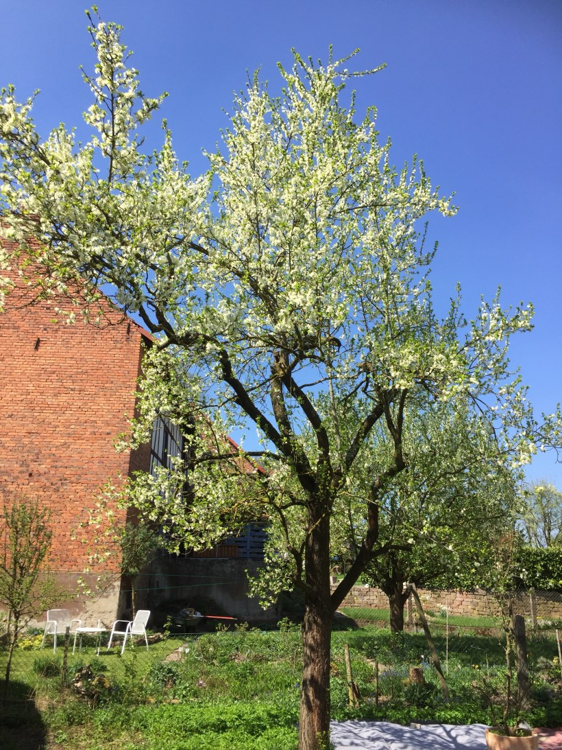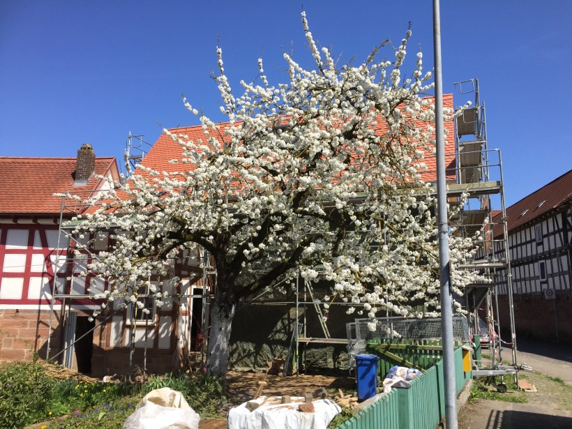 Wie schön kann es auf einer Baustelle sein? Seht selbst – einfach zauberschön. Unsere Kirsche sieht aus wie ein großer Schneeball und Pflaume und Apfel ziehen nach. Was für eine fantastische Zeit.