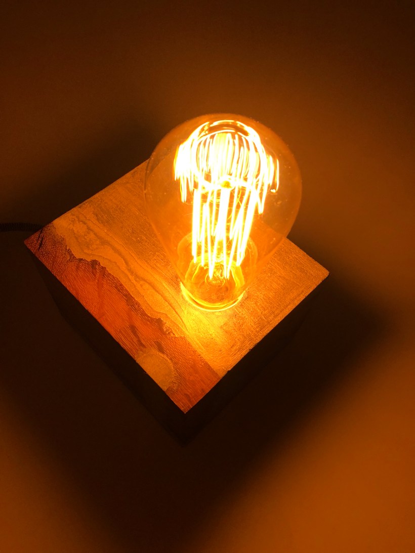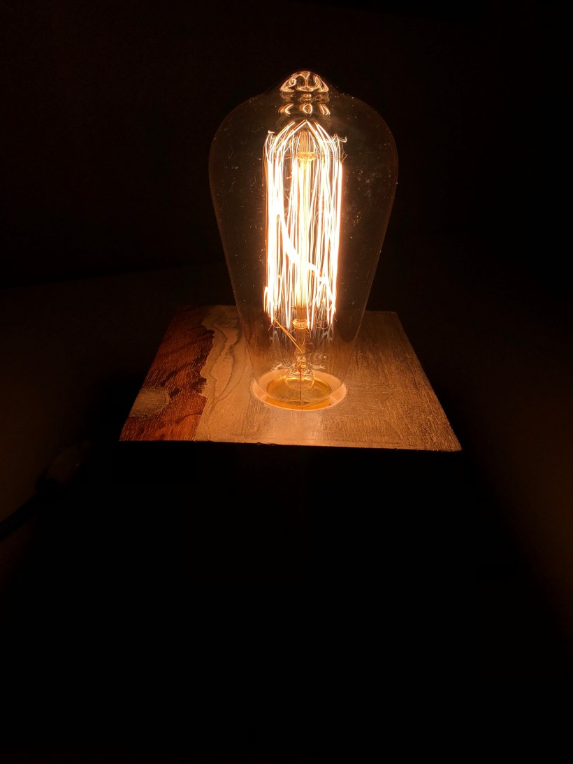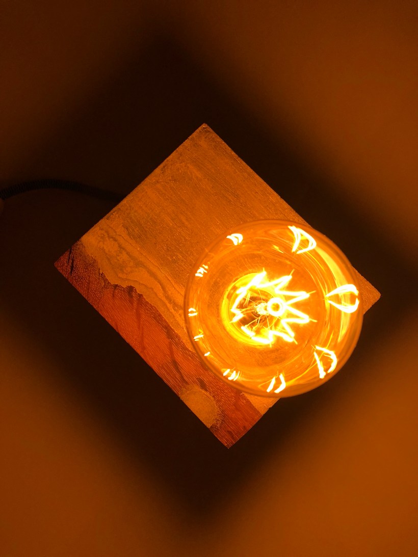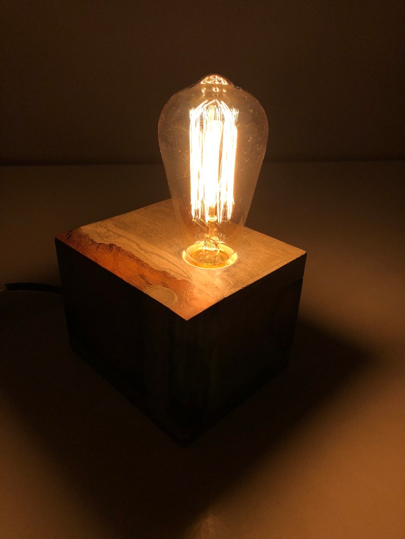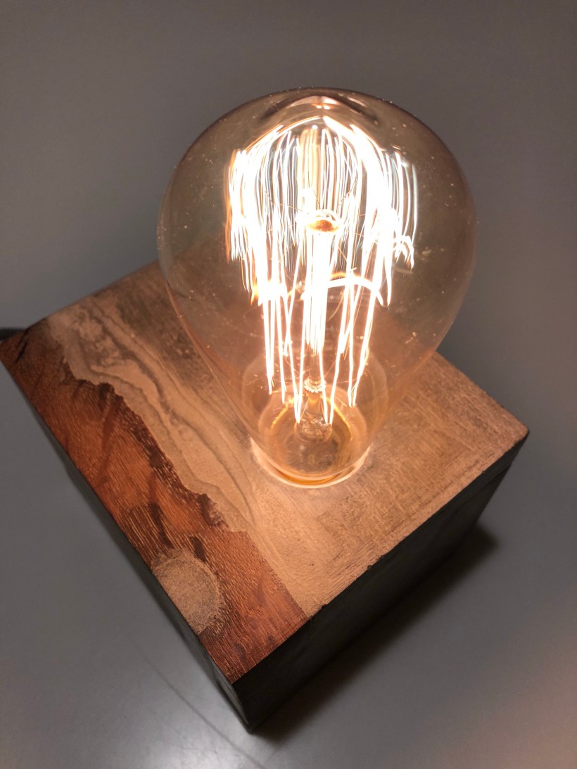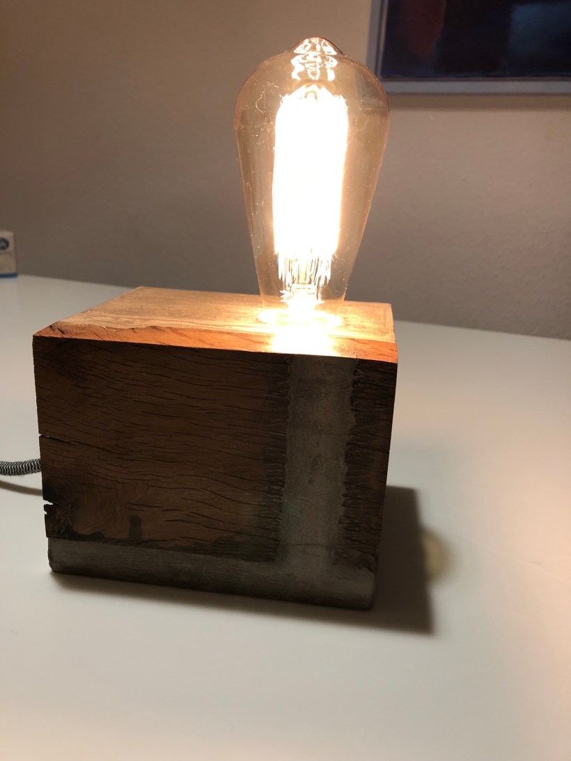 Hier zeige ich euch ein Geschenk, DIY, aus Materialien von der Baustelle. Der Fuß der Lampe wurde aus Restholz der Balken und Estrich gefertigt.
