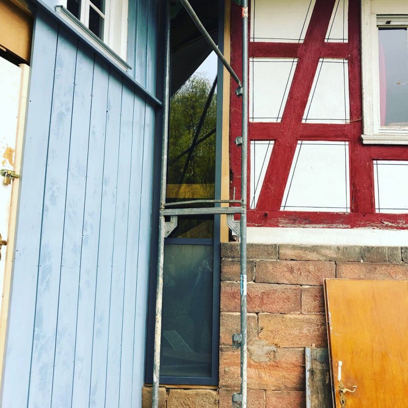 Wir haben ein 3m hohes Fenster als Verbindung zwischen Bauernhaus und Wirtschaftsgebäude bekommen.