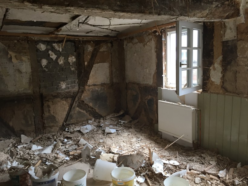 September 2016 Schwere Hammer, starke Männer, viel Lärm und Staub - was hat das zu bedeuten? Genau, jetzt ist Rückbau am Haupthaus angesagt. Die Wände von Gipskarton befreien, den Fußböden die vielen Schichten klauen, den versotteten Kamin dem Erdboden gleich machen, alle Balken wieder frei legen... ...und ein riesen Schock mit inbegriffen. Auf die Plätze, [...]